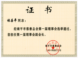 | 公司董事長(zhǎng)當(dāng)選為南平市慈善總會(huì)副會(huì)長(zhǎng) | | 公司向南平市慈善總會(huì)捐資三十萬(wàn)元 |