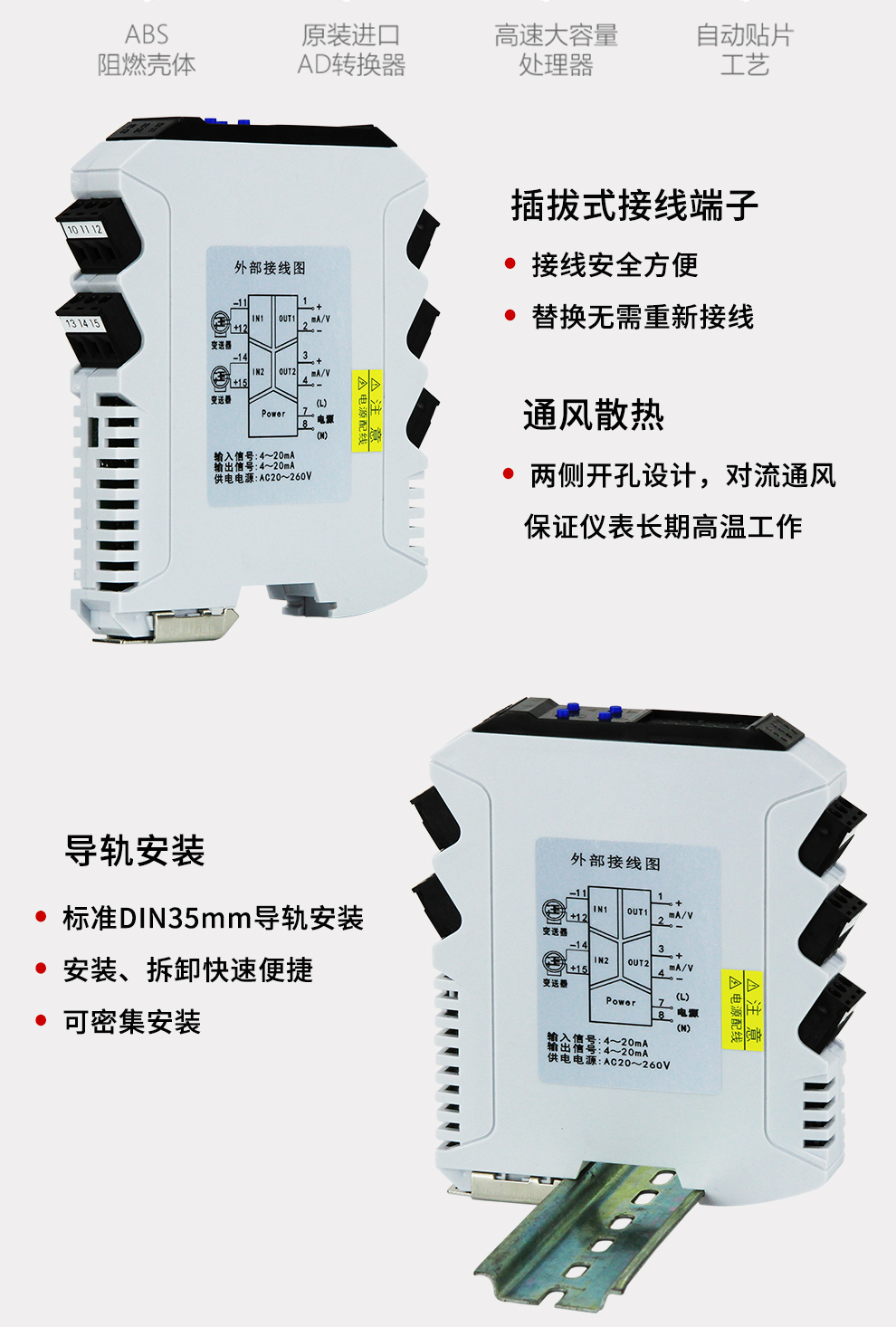 虹潤(rùn)公司是專業(yè)生產(chǎn)隔離器的國(guó)家專精特新“小巨人”企業(yè)。生產(chǎn)的導(dǎo)軌式智能配電器,具有配接二三線制變送器,輸入輸出電源三隔離,響應(yīng)時(shí)間快,傳輸精度0.1%FS,支持485通訊輸出等特點(diǎn)。產(chǎn)品獲得信號(hào)隔離器、一種二端子模塊、無(wú)源信號(hào)隔離器等3項(xiàng)國(guó)家發(fā)明專利,主持起草現(xiàn)場(chǎng)設(shè)備工具(FDT)接口規(guī)范、工業(yè)過(guò)程測(cè)量和控制系統(tǒng)用隔離式安全柵、工業(yè)過(guò)程測(cè)量和控制系統(tǒng)用配電器等3項(xiàng)國(guó)家標(biāo)準(zhǔn),以及通信系統(tǒng)多通道數(shù)據(jù)采集控制終端規(guī)范軍用標(biāo)準(zhǔn)。參與國(guó)際5G標(biāo)準(zhǔn)制定。,取得智能隔離器等2項(xiàng)相關(guān)軟件著作權(quán)。產(chǎn)品廣泛應(yīng)用于石油、化工,冶金、電力、食品、光伏能源、污水處理等需要電隔離的工業(yè)自動(dòng)化控制系統(tǒng)。