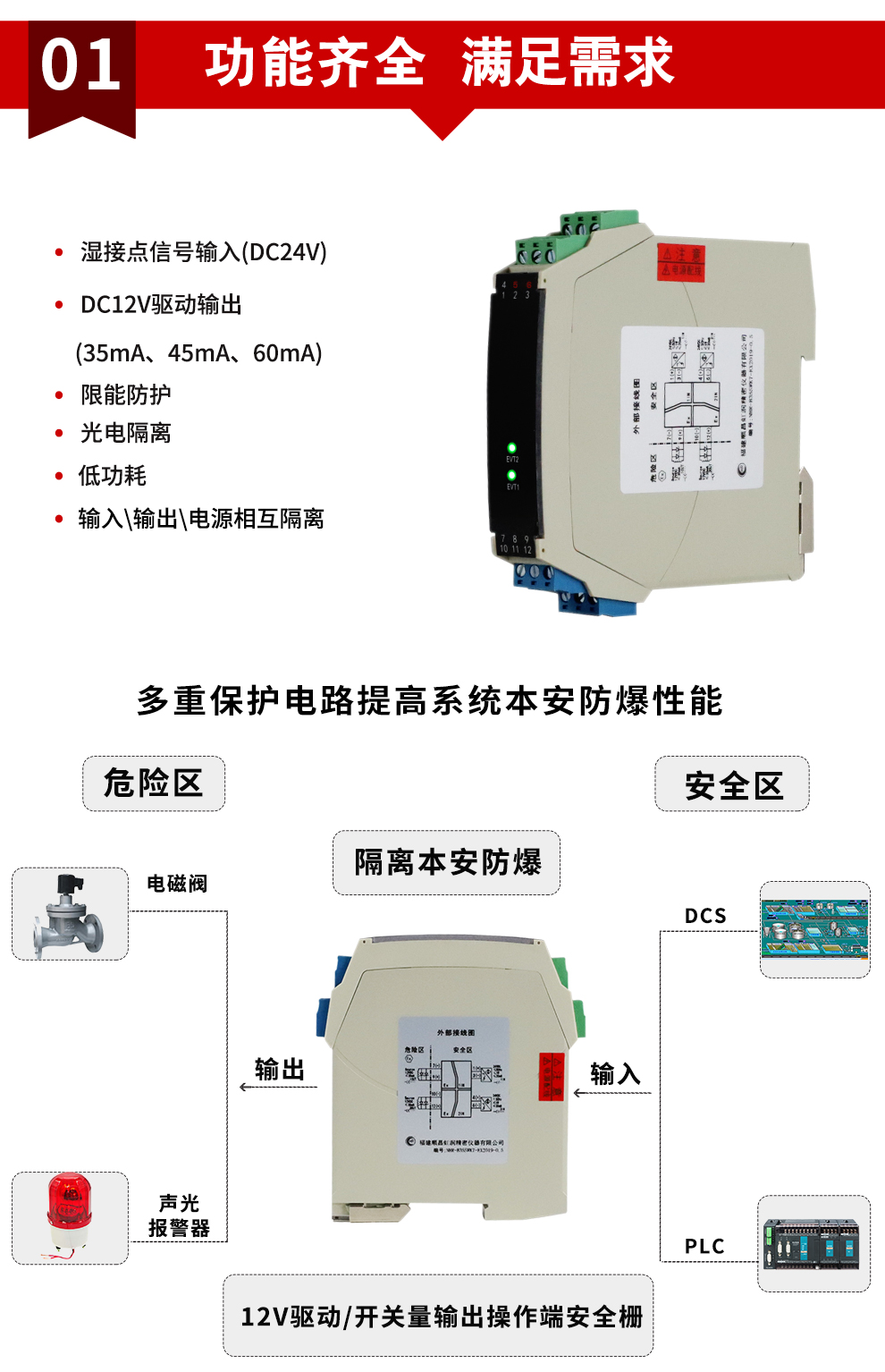 虹潤公司是專業(yè)生產(chǎn)隔離器的國家專精特新“小巨人”企業(yè)。生產(chǎn)的隔離式操作端安全柵涵蓋信號電壓輸入、電流輸入、開關(guān)量輸入等多種產(chǎn)品類型。產(chǎn)品獲得具備減震抗干擾能力的溫度變送器、信號隔離器、一種二端子模塊、無源信號隔離器等4項國家發(fā)明專利,主持起草物聯(lián)網(wǎng)智能溫度儀表、現(xiàn)場設備工具(FDT)接口規(guī)范、工業(yè)過程測量和控制系統(tǒng)用溫度變送器等3項國家標準,以及通信系統(tǒng)多通道數(shù)據(jù)采集控制終端規(guī)范軍用標準。參與國際5G標準制定,取得智能隔離式安全柵等4項相關(guān)軟件著作權(quán)。產(chǎn)品廣泛應用于石油、電力、化工,冶金、智能制造、污水處理等諸多行業(yè)。