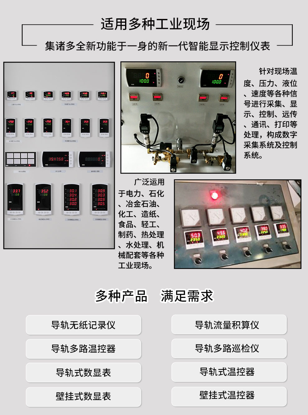 虹潤(rùn)公司是專業(yè)生產(chǎn)多路溫度巡檢儀的國(guó)家專精特新“小巨人”企業(yè)。生產(chǎn)的導(dǎo)軌多路巡檢儀,具有八回路巡檢采集,全切換信號(hào)輸入,高抗電磁干擾,全隔離設(shè)計(jì),分別報(bào)警/分別變送輸出等特點(diǎn)。產(chǎn)品獲得巡回檢測(cè)顯示方法及裝置以及工業(yè)模塊的導(dǎo)軌式安裝結(jié)構(gòu)等2項(xiàng)國(guó)家發(fā)明專利,主持起草工業(yè)過(guò)程控制系統(tǒng)用模擬輸入兩位或多位輸出儀表、物聯(lián)網(wǎng)智能溫度儀表通用技術(shù)條件等2項(xiàng)國(guó)家標(biāo)準(zhǔn),以及通信系統(tǒng)多通道數(shù)據(jù)采集控制終端規(guī)范軍用標(biāo)準(zhǔn),參與國(guó)際5G標(biāo)準(zhǔn)制定,取得巡回檢測(cè)控制儀等3項(xiàng)相關(guān)軟件著作權(quán)。產(chǎn)品廣泛應(yīng)用于石化、冶金、電力、食品、制藥、水處理、實(shí)驗(yàn)室等諸多領(lǐng)域。