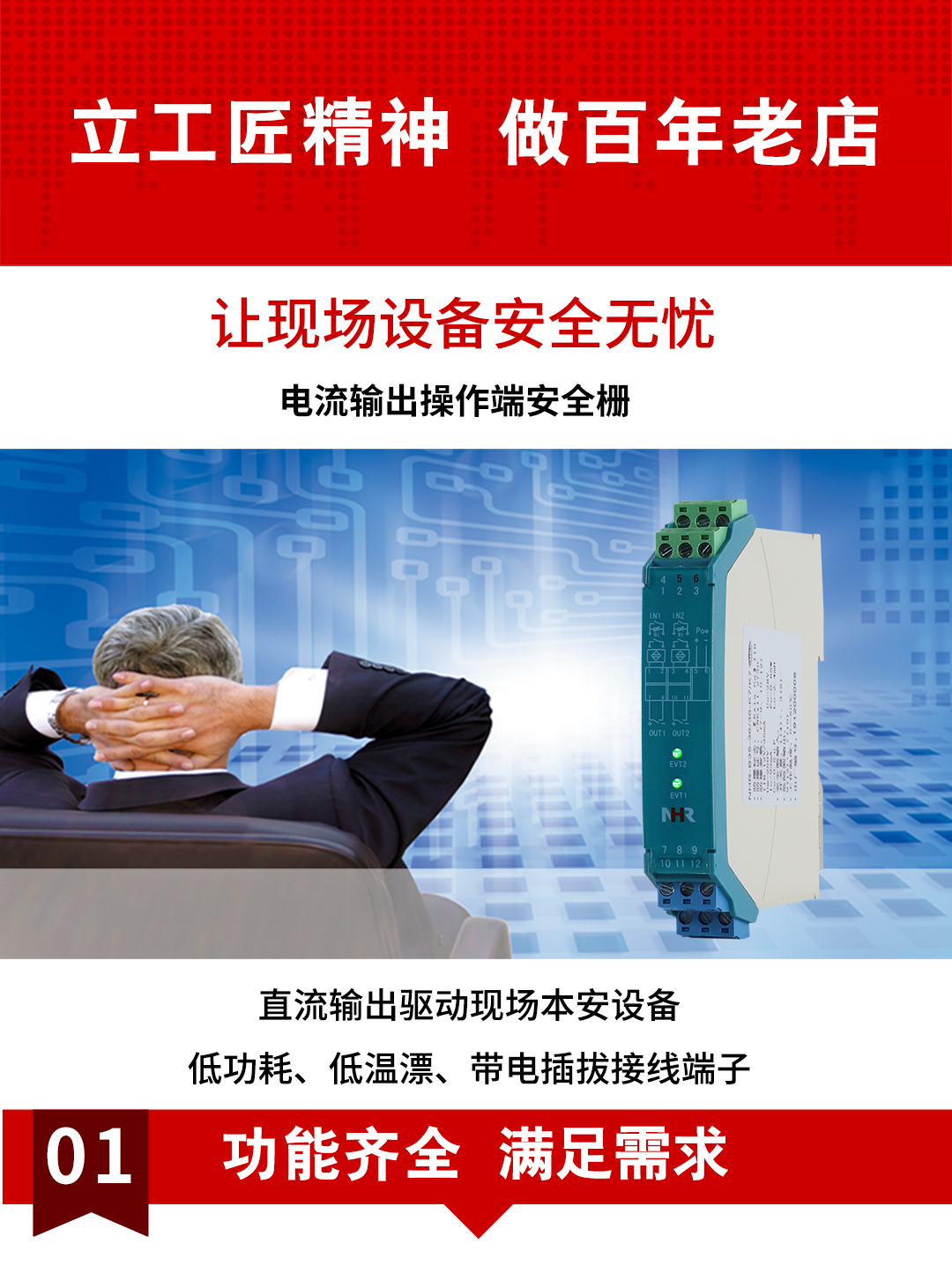虹潤(rùn)公司是專業(yè)生產(chǎn)隔離器的國(guó)家專精特新“小巨人”企業(yè)。生產(chǎn)的電壓/電流輸出操作端隔離柵涵蓋信號(hào)電壓輸入、電流輸入、開關(guān)量輸入等多種產(chǎn)品類型。產(chǎn)品獲得具備減震抗干擾能力的溫度變送器、信號(hào)隔離器、一種二端子模塊、無(wú)源信號(hào)隔離器等4項(xiàng)國(guó)家發(fā)明專利,主持起草物聯(lián)網(wǎng)智能溫度儀表、現(xiàn)場(chǎng)設(shè)備工具(FDT)接口規(guī)范、工業(yè)過程測(cè)量和控制系統(tǒng)用溫度變送器等3項(xiàng)國(guó)家標(biāo)準(zhǔn),以及通信系統(tǒng)多通道數(shù)據(jù)采集控制終端規(guī)范軍用標(biāo)準(zhǔn)。參與國(guó)際5G標(biāo)準(zhǔn)制定,取得智能隔離式安全柵等4項(xiàng)相關(guān)軟件著作權(quán)。產(chǎn)品廣泛應(yīng)用于石油、電力、化工,冶金、智能制造、污水處理等諸多行業(yè)。